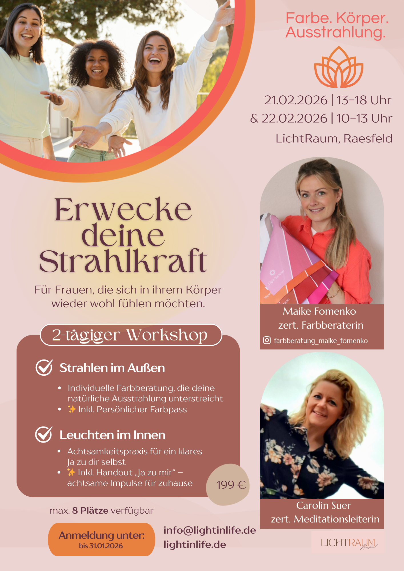 In diesem persönlichen 2-tägigen Workshop in Raesfeld verbinden wir äußeres Strahlen mit innerer Präsenz.